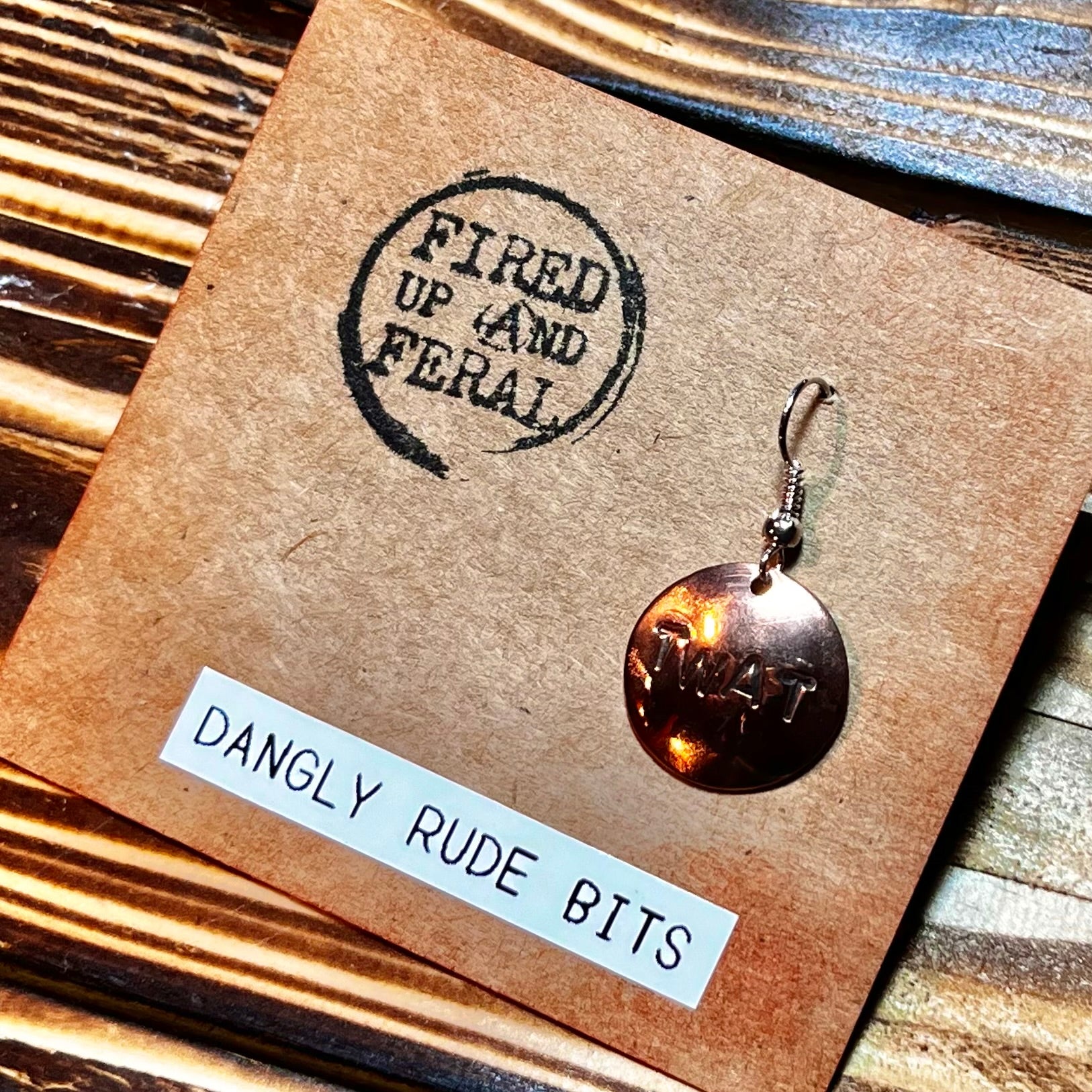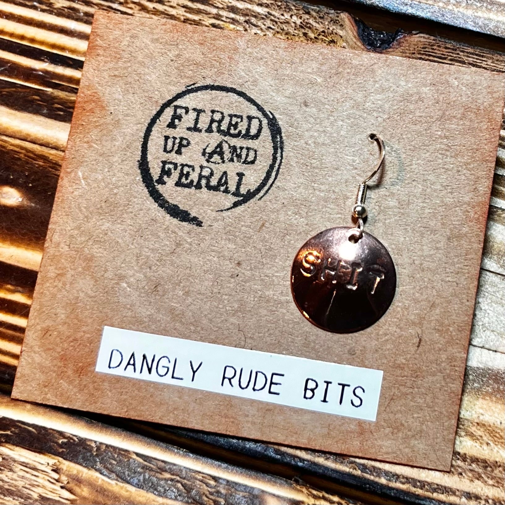 Dangly Rude Bits copper earrings