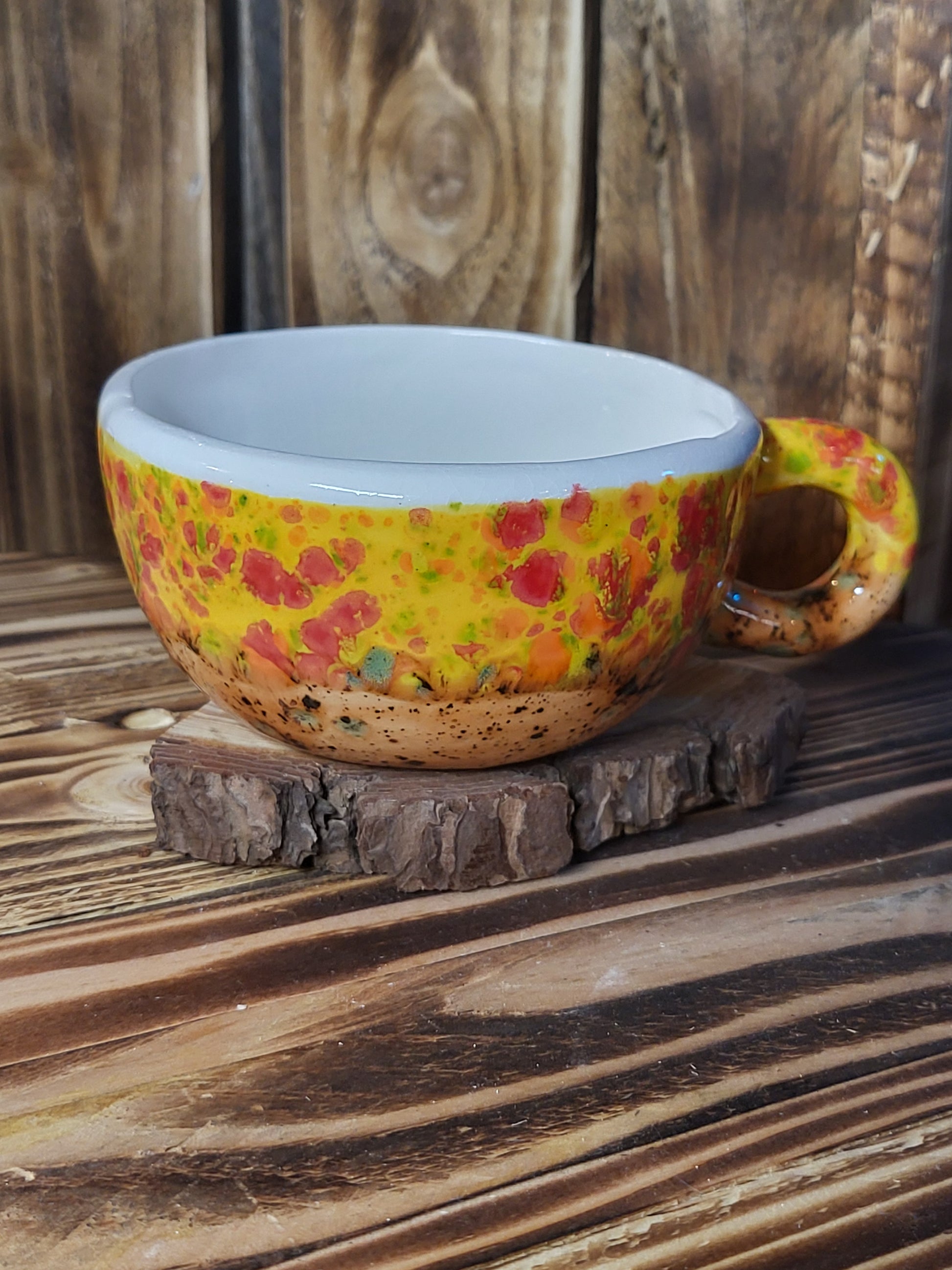 Handmade earthenware small cappuccino cup, individually glazed with natural variations. Perfect for smaller milky coffees with plenty of character.